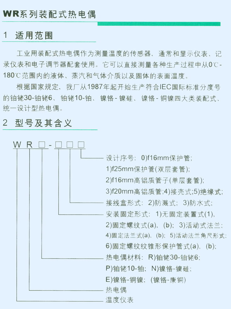 首頁 產品中心 儀器儀表產品系列 儀器儀表 WR系列裝配式熱電偶