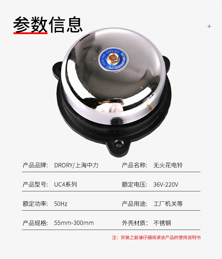 首頁 產品中心 電鈴系列 UC4-2.5寸-12寸(55mm-300mm)電鈴系列