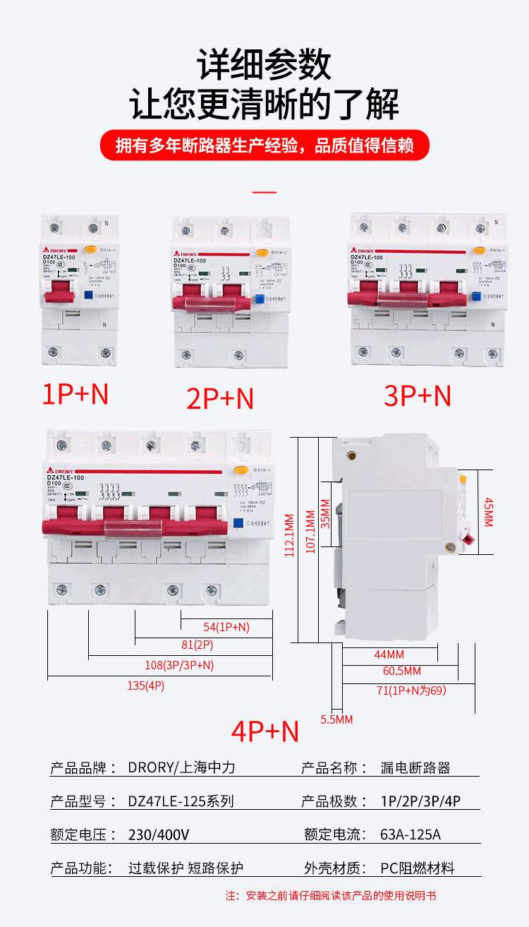 DZ47LE-125; TGC1LE-125; 1P~4P 63A~125A漏電斷路器系列