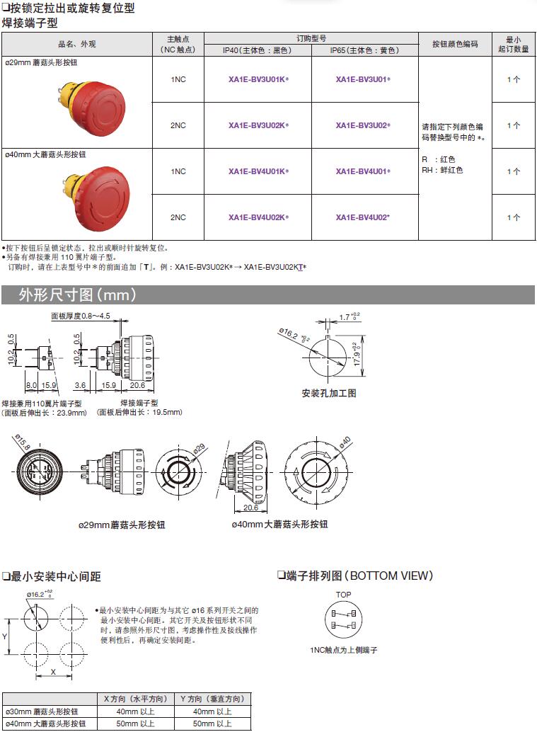 全新原裝IDEC和泉16mm小型急停開關XA1E-BV3U02R二常閉XA1E-BV