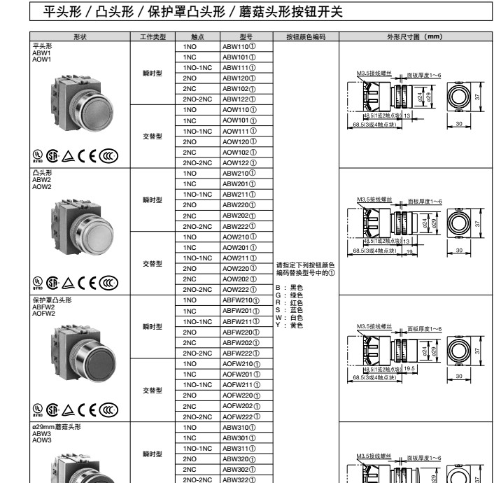 全新原裝IDEC和泉平頭自復位按鈕開關ABW110G/R/S/Y/B/W新款1常開