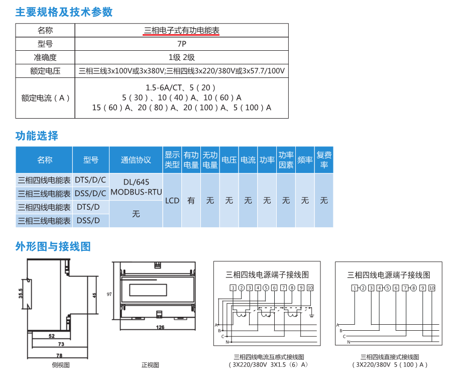 LCD液晶顯示導(dǎo)軌式多功能/有功電能表單相/三相電表