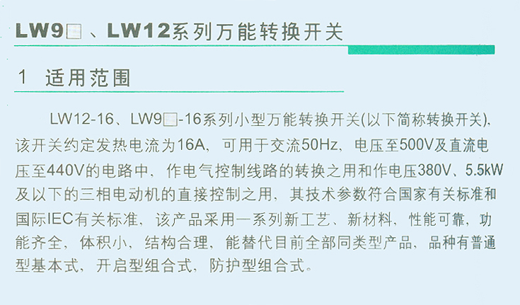 LW9 LW12系列萬能轉(zhuǎn)換開關(guān)