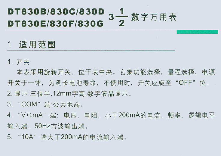 首頁 產品中心 儀器儀表產品系列 儀器儀表 DT830B/830C/830D、DT830E/830F/830數字萬用表