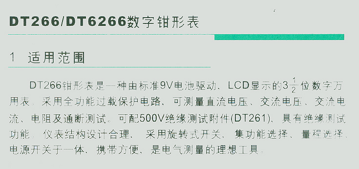 首頁 產品中心 儀器儀表產品系列 儀器儀表 DT266/DT266數字鉗形表