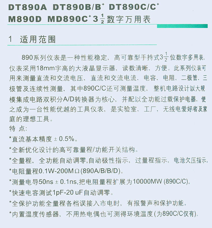 DT890A DT890B/B* DT890C/C* M890D MD890C*數字萬用表