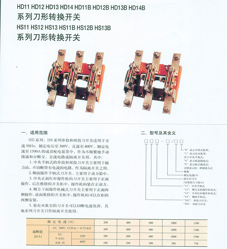 HD11HD12 HD13 HD14 系列刀形轉換開關