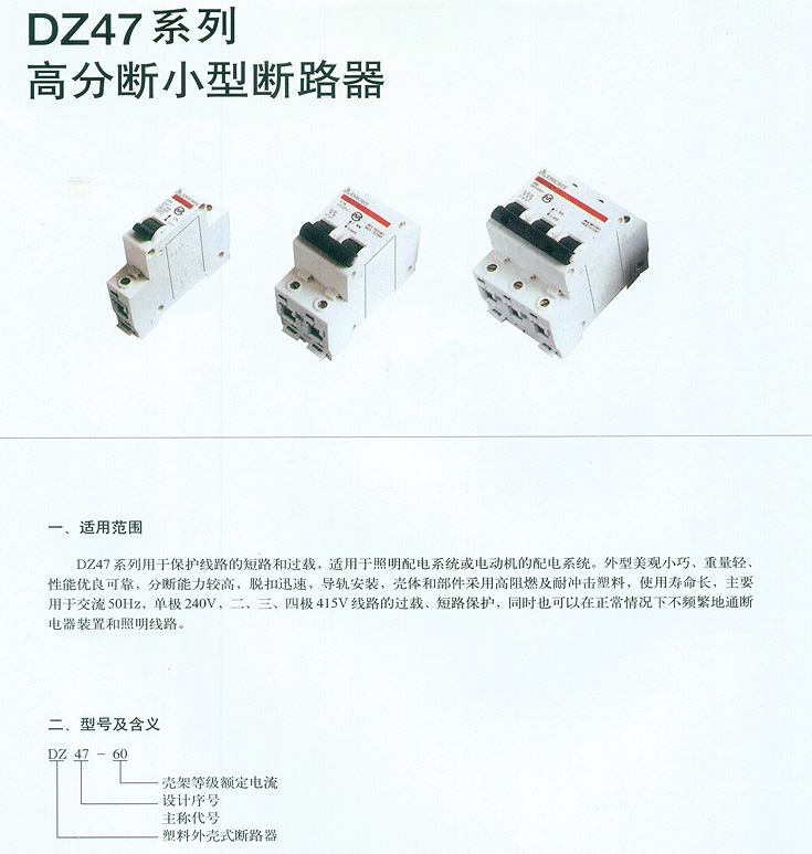 首頁 產品中心 低壓電器產品總匯系列 斷路器系列 DZ47系列高分斷小型斷路器
