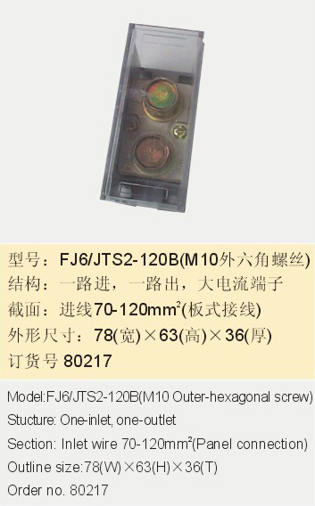 首頁 產品中心 接線端子產品系列 FJ6/JTS2 FJ6/JTS2-120B(M10外六角螺絲)