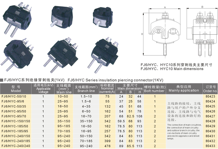 FJ6/HYC系列絕緣穿刺線夾(1kV)