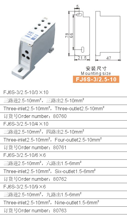 FJ6S-3/2.5-10/3×10特殊型多用途接線端子(三進多出)