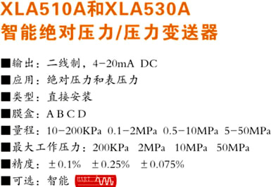 XLA510A XLA530A 智能絕對壓力/壓力變送器