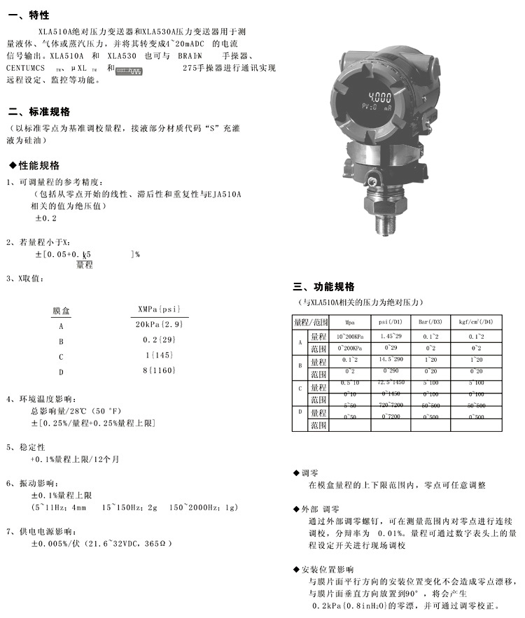 首頁 產品中心 儀器儀表產品系列 XLA510A XLA530A 智能絕對壓力/壓力變送器
