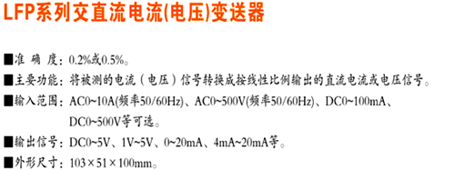 首頁 產品中心 儀器儀表產品系列 LFP系列交直流電流(電壓)變送器