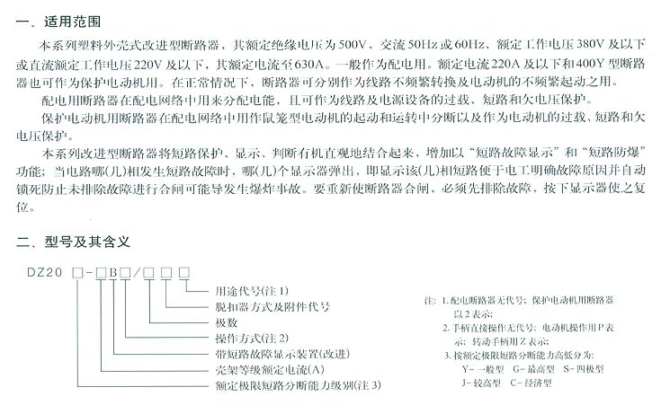 DZ20B系列塑料外殼式斷路器