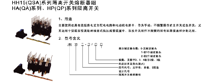 首頁 產品中心 低壓電器產品總匯系列 刀開關-負荷-隔離開關系列 HH15(QSA)系列隔離開關熔斷器組