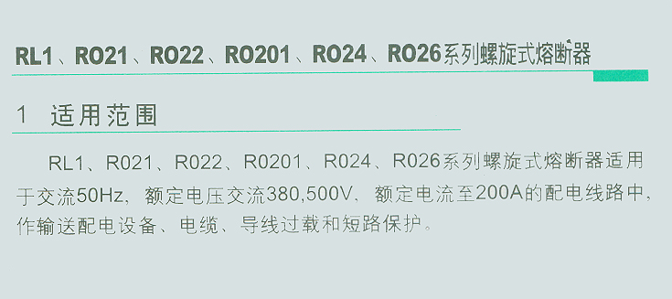 RL1、RO21、RO22、RO24、RO26系列螺旋式熔斷器