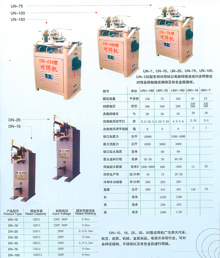 UN-7 16 25 75 100 150對焊機系列