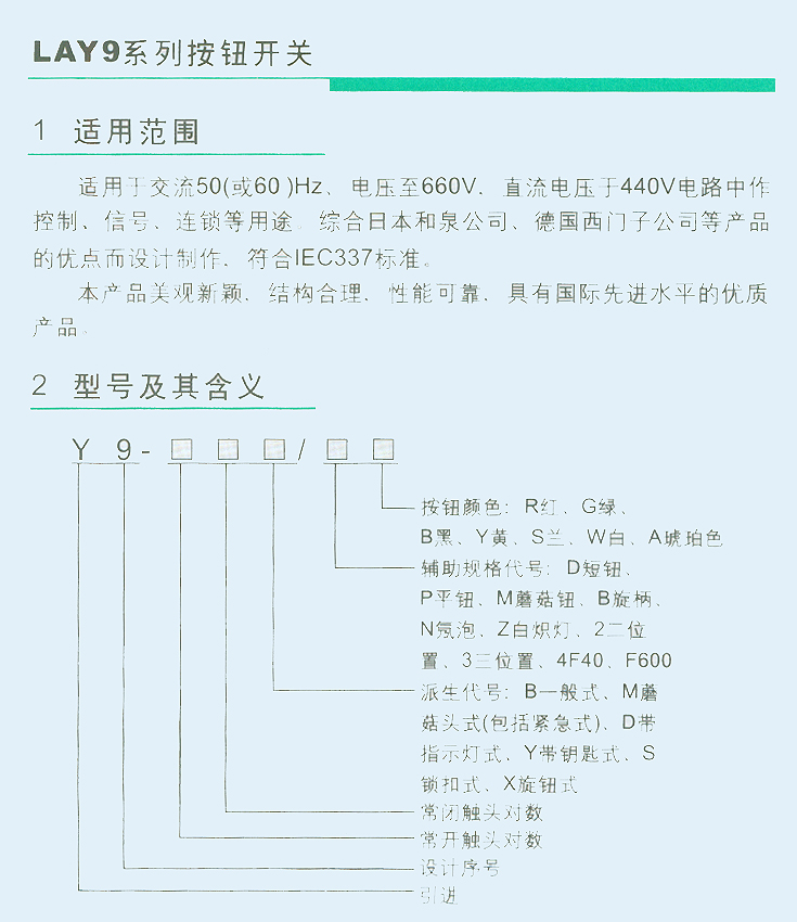 首頁 產品中心 低壓電器產品總匯系列 按鈕-轉換-行程-倒順系列 LAY9系列按鈕開關