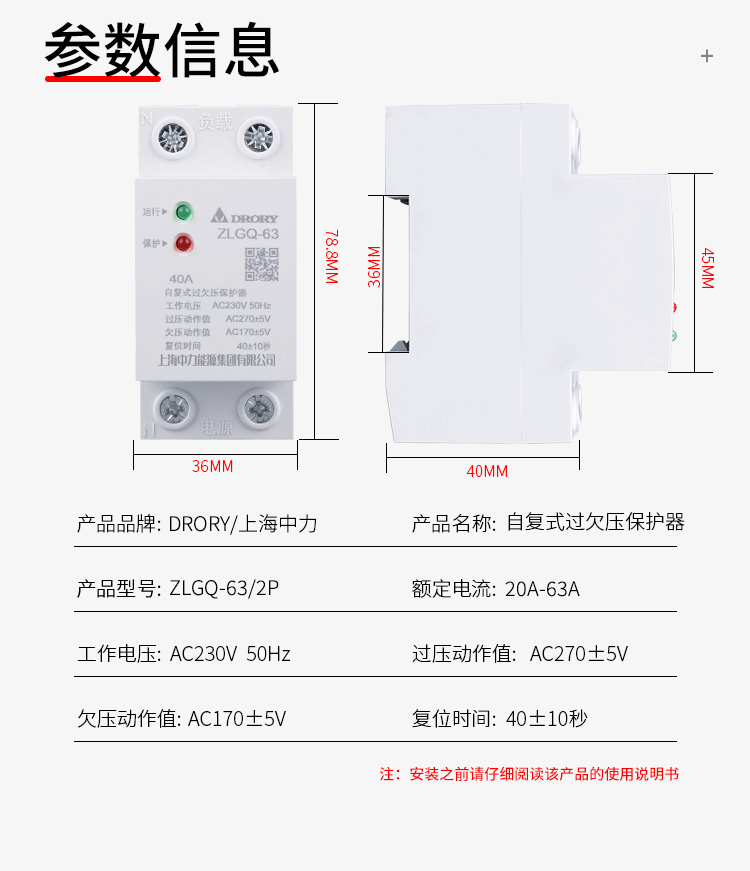 首頁 產(chǎn)品中心 自復(fù)式過欠壓保護(hù)器系列 ZLGQ-63/2P 20A 32A 40A 63A 自復(fù)式保護(hù)器系列