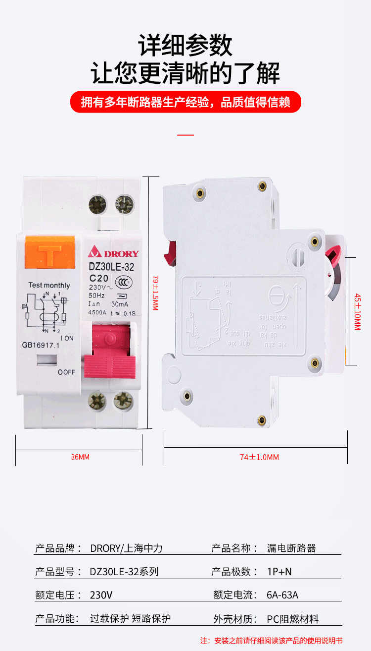首頁 產品中心 漏電斷路器系列 DZ30LE-32; TGC1LE-32; 1P+N 6A~63A漏電斷路器系列