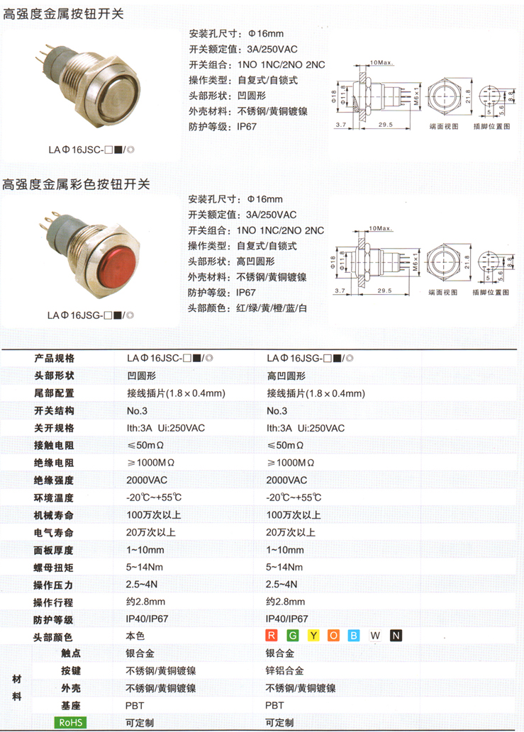 首頁 產品中心 金屬高強度抗破壞按鈕系列 LAΦ16JS帶燈按鈕開關